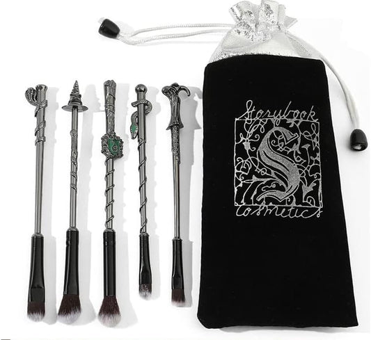 YOVEKAT Harry Potter Wizard Wand Makeup Brush Metal Handle Gift Set Collection 5 Pcs for Halloween Cosplay